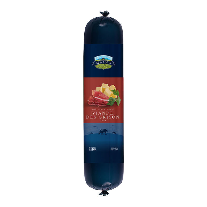 Premium full-fat processed cheese with Viande des grison Ingredients: Cheddar cheese - skimmed milk powder 4% - milk protein - emulsifying salts - potassium sorbet 0.1 % - natural butter - grison flavor Lactose rate 7% as a maximum