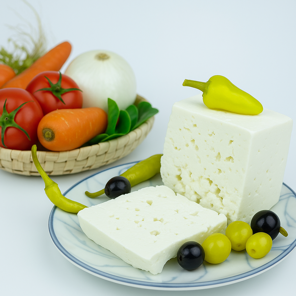 Tangy and firm aged Istanbully cheese paired with black and green olives and pickled green chili. A bold Mediterranean classic with rich flavor and crumbly texture—perfect for breakfast or mezze.