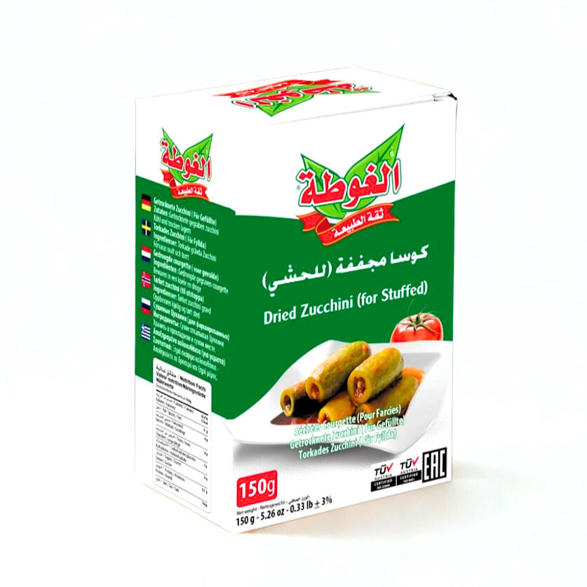 Recreate the rich flavors of traditional Middle Eastern stuffed zucchini with Al Ghouta’s Dried Zucchini. Naturally dried and hollowed, these zucchinis are ideal for preparing Mahshi and other classic dishes. Just soak, stuff, and cook for an authentic homemade taste.
