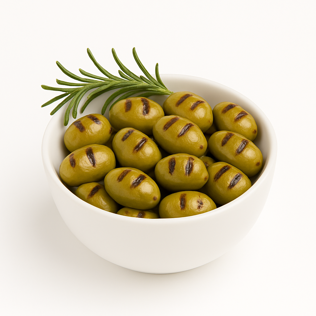 Savor the bold, smoky flavor of our fire-grilled green olives — expertly char-marked for an irresistible taste. These olives are lightly brined and flame-grilled to enhance their natural richness with a hint of smokiness. Perfect for antipasto platters, salads, or gourmet snacking. A true Mediterranean delicacy with a twist.
