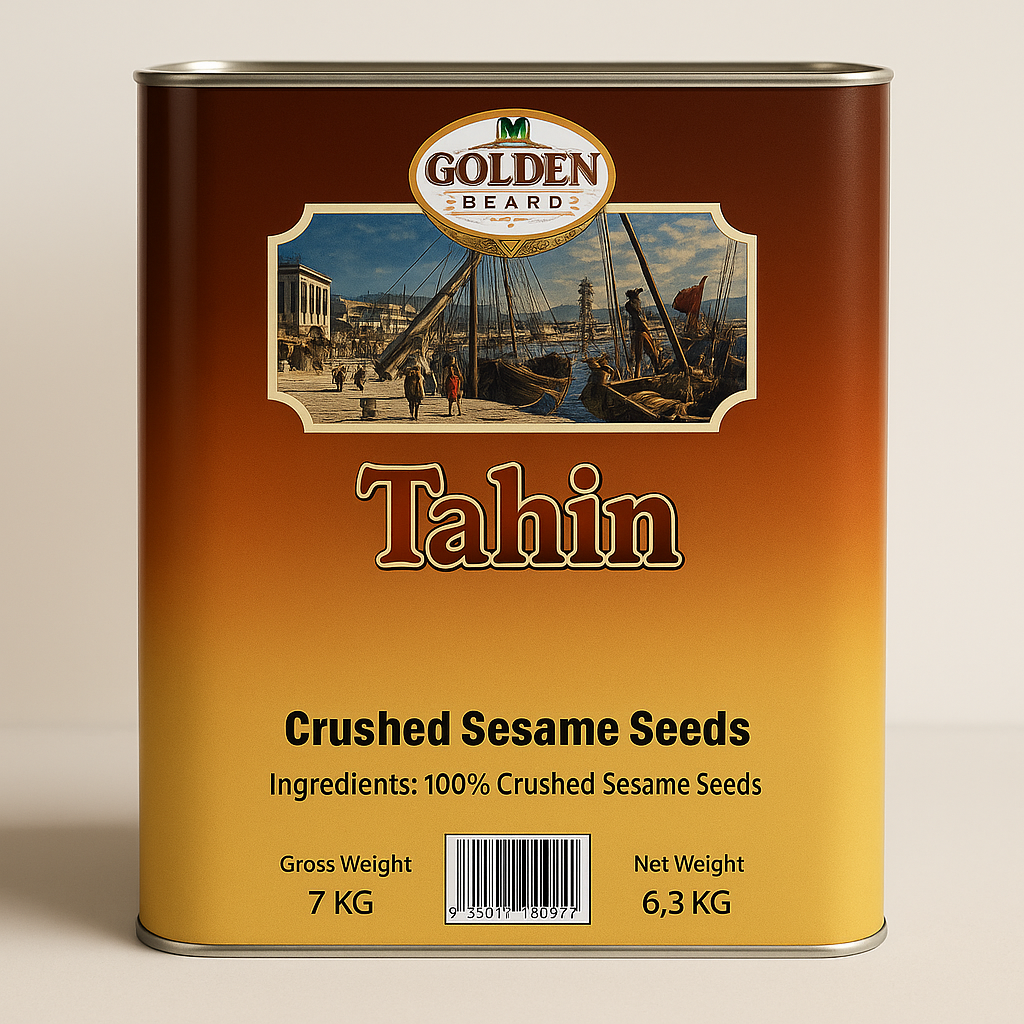 Golden Beard Tahini is made from 100% crushed sesame seeds, delivering a rich, creamy texture and authentic flavor. Packed in a large 6.3 KG tin, it’s perfect for restaurants, catering, or bulk home use. Ideal for hummus, dressings, sauces, and baking, this tahini is pure, nutritious, and versatile — just how traditional tahini should be.