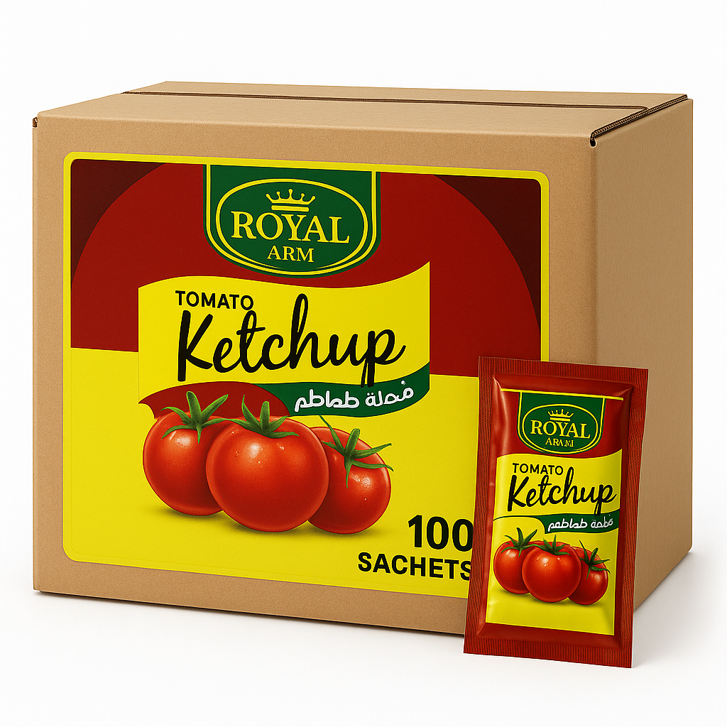 Enjoy the rich, tangy flavor of Royal Arm Tomato Ketchup in convenient single-serve sachets. Perfect for restaurants, cafes, events, and takeout orders.