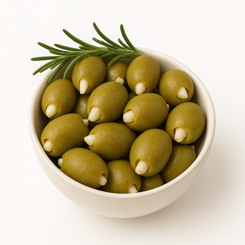 Elevate your appetizer game with our premium green olives stuffed with fresh garlic cloves. Each olive bursts with a bold, savory flavor, blending the briny richness of handpicked olives with the zesty kick of garlic. Perfect for mezze platters, sandwiches, or gourmet snacking.