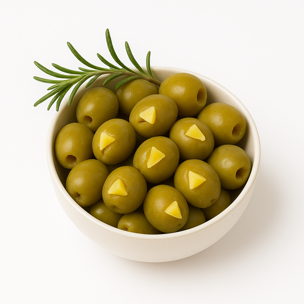 – Firm green olives with fresh lemon stuffing