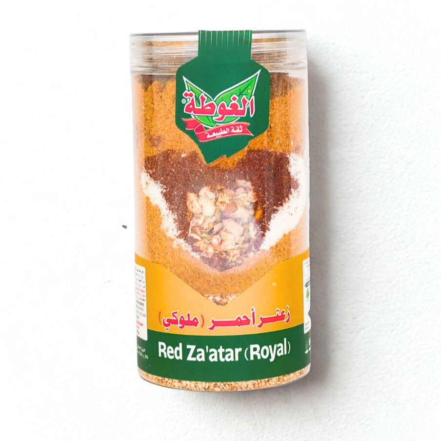 Elevate your meals with the bold and aromatic flavor of Royal Red Za’atar from Al Ghouta. This premium spice blend combines sun-dried thyme, sumac, sesame seeds, and traditional spices to create a rich, tangy taste with a hint of nuttiness.